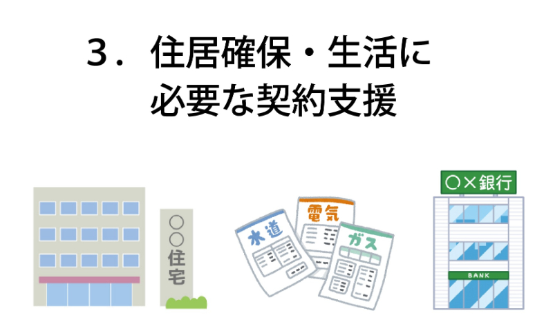 住居確保のお手伝いや銀行口座の開設や携帯電話の契約等の案内をいたします。各種手続きのサポートやアドバイスをいたします。※国内に在留していて、引っ越しの必要がない場合は不要となります。